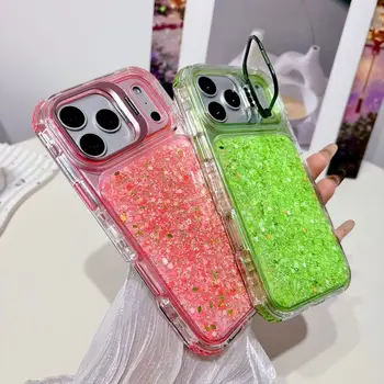 360 Kickstand Transparent Armor Hard Phone Case for Iphone 16 Pro Max 17 Air 17 Pro Full Cover Glitter Fashionable Phone Case