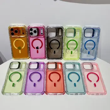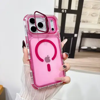 Clear Magnetic Shockproof Transparent Phone Case Cover for Apple 17 Pro Max 17 Air Full Cover Camera Flame Holder Phone Cases