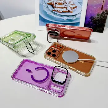 Transparent TPU PC Hard Magnetic Phone Case for Apple 17 Pro Max 17 Air 16 Pro 360 Design Camera Flame Holder Phone Cover