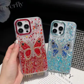 Wholesale Stong Island Diamond Glitter Phone Case for Iphone 13 Pro Max 17 Pro Explosive Tassel Butterfly Design Fashion Cover