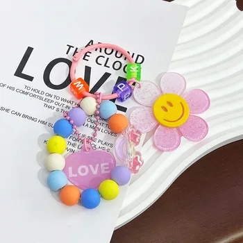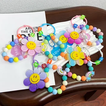 DIY Creative Color Sunflower Phone Case Lanyard Small Fresh Ball Chain Love Rainbow Accessories for Bag Decoration