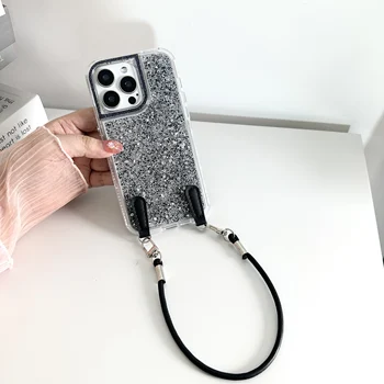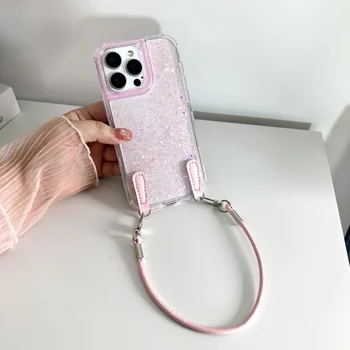 New Design Camera Epoxy 360 Full Cover Glitter Phone Case for iPhone 17 Pro Max 15 Plus 13 Pro 3 in 1 with Hand Strap