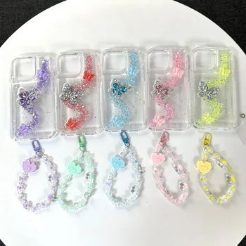 Luxury Floral DIY Mobile Phone Straps Colorful Strawberry Bow Flower Wrist Beaded Headset Bag Pendant Hanging Lanyard